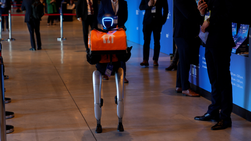 Kluczowym elementem pokazu był humanoidalny robot Unitree G1, który samodzielnie dostarczył zamówienie, ilustrując możliwe rozwiązanie problemu tzw. ostatniej mili.